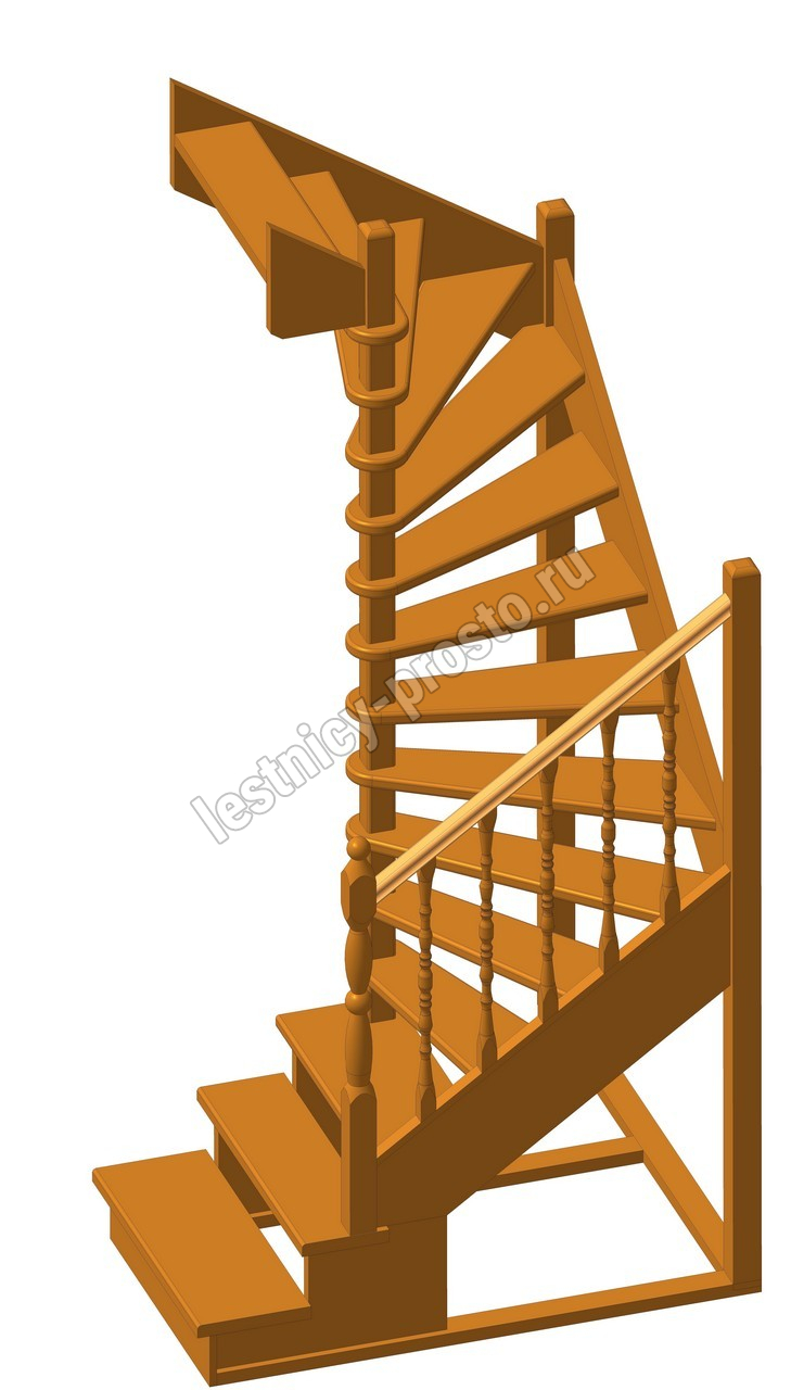 Удобная поворотная лестница на второй этаж. Дополнительные ограждения по первому маршу обеспечивают безопасность при подъеме и спуске, кроме того, небольшой угол подъема открывает всю площадь ступеней. Монтаж осуществляется силами двух человек на объекте по указаниям, приведенным в паспорте на лестницу.