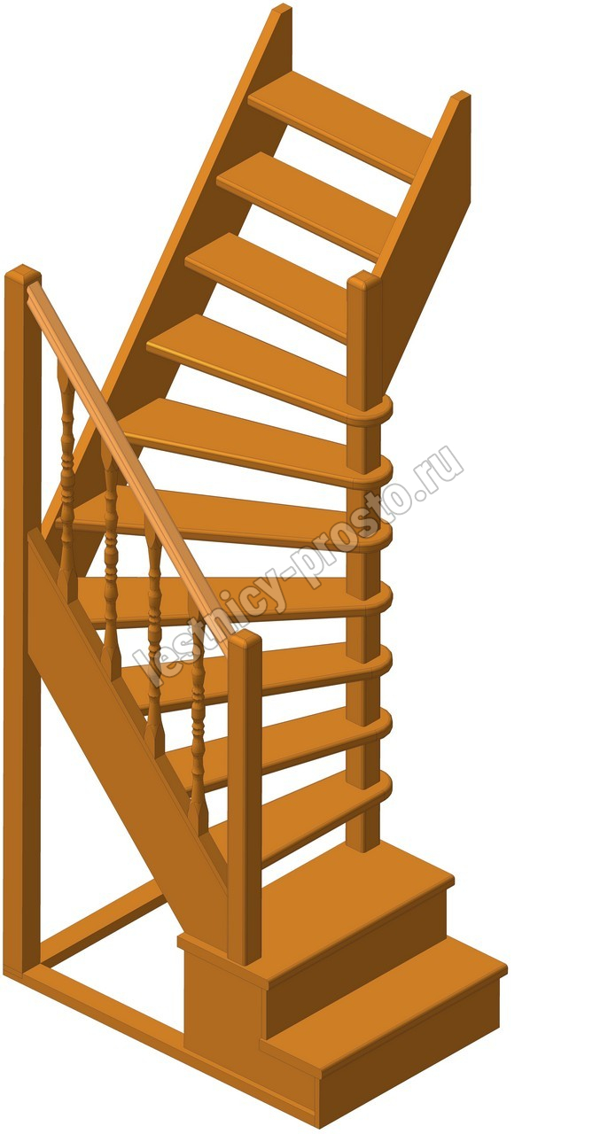 Деревянная межэтажная лестница ЛЕС-91 2700-2925 проем 1220-780, Лиственница
