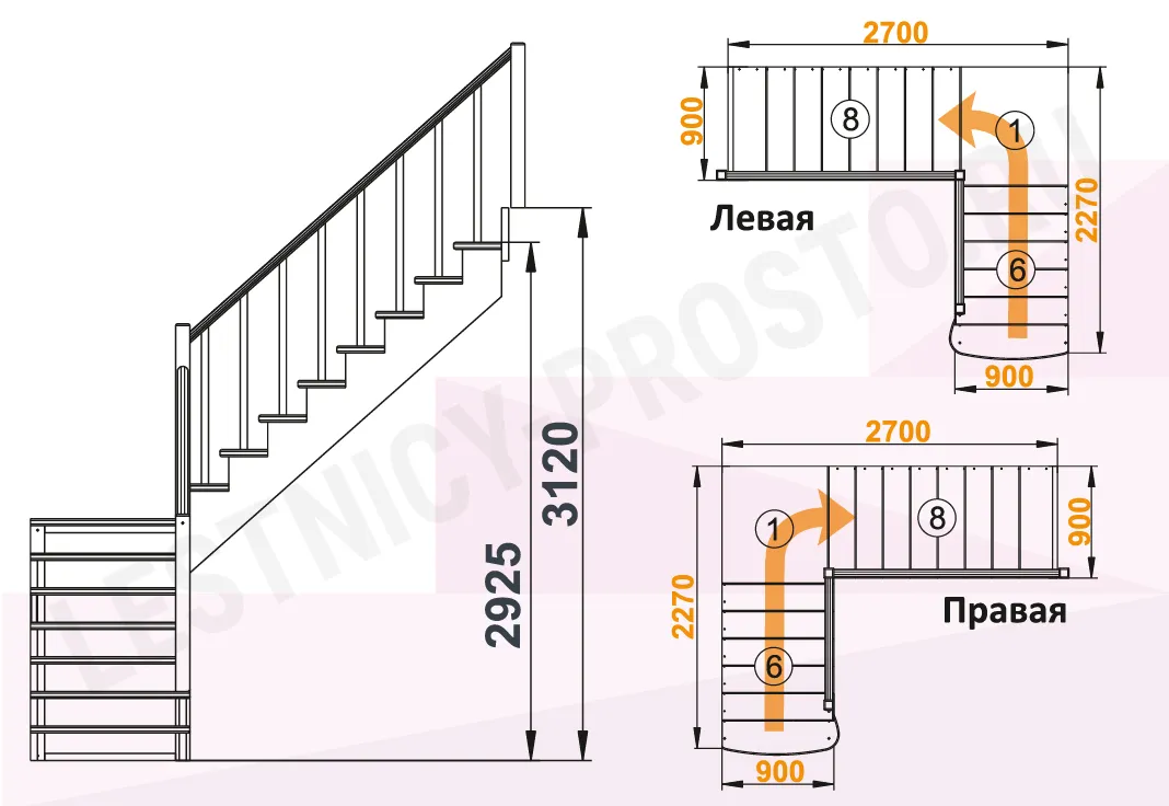 Лестница из сосны К-002М/1 с подступёнками под покраску |
