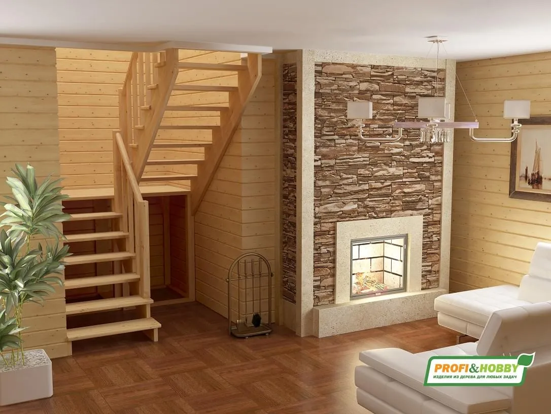 Ступени и поручень лестницы изготовлены из бука, остальные элементы из сосны.