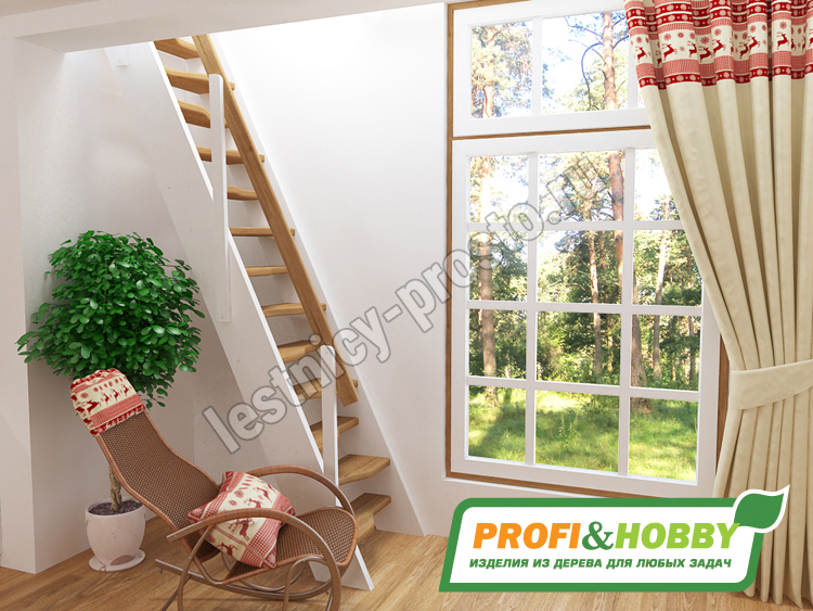Ступени и поручень лестницы изготовлены из бука, остальные элементы из сосны.