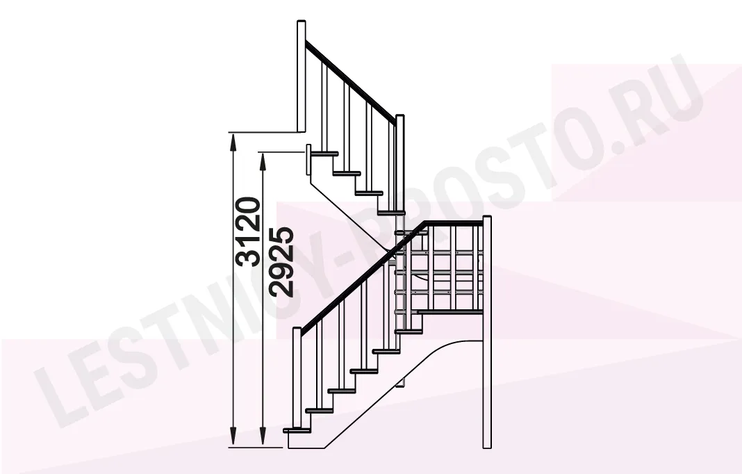 Ограждение по обеим сторонам (снизу до поворотной площадки)