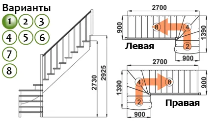Лестница К-001М/1 с поворотом налево