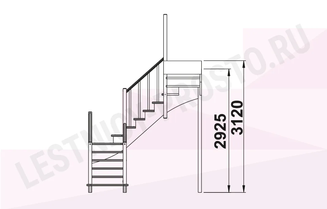 Ступени и поручень лестницы выполнены из дуба, остальные элементы из сосны.
