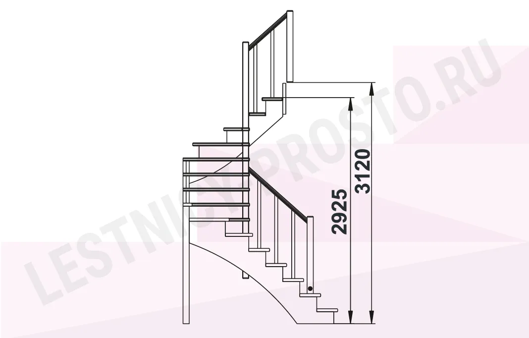 Базовый комплект включает в себя деревянные элементы лестницы и ограждения без какого-либо покрытия.