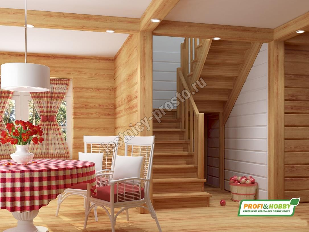 Ступени и поручень лестницы выполнены из ясеня, остальные элементы из сосны. Возможно изготовление данной модели полностью из ясеня.