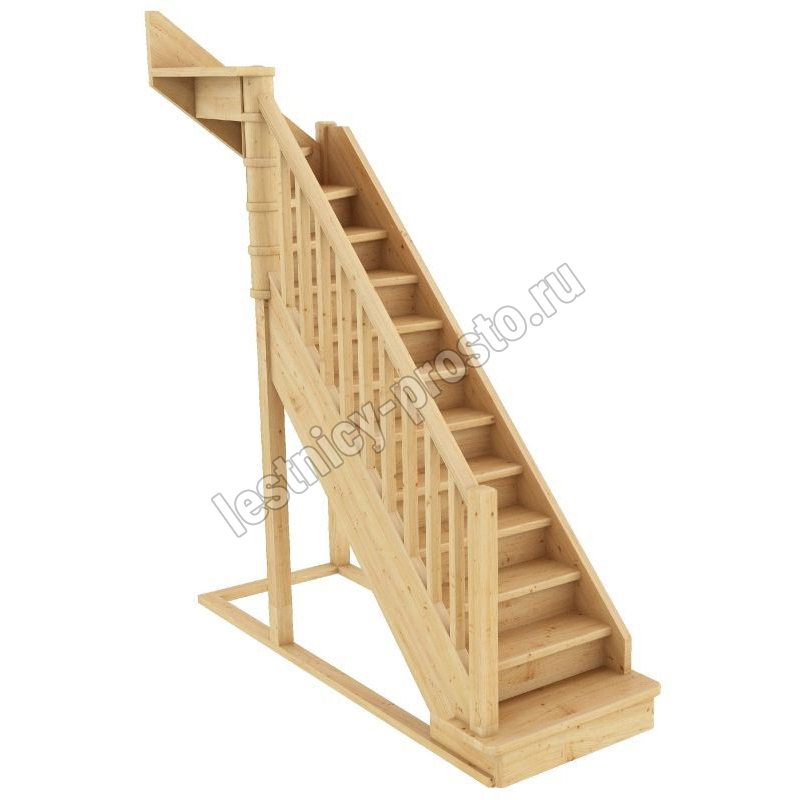 Базовый комплект включает в себя деревянные элементы лестницы и ограждения без какого-либо покрытия.