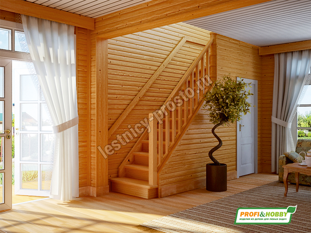 Ступени и поручень лестницы изготовлены из ясеня, остальные элементы из сосны.