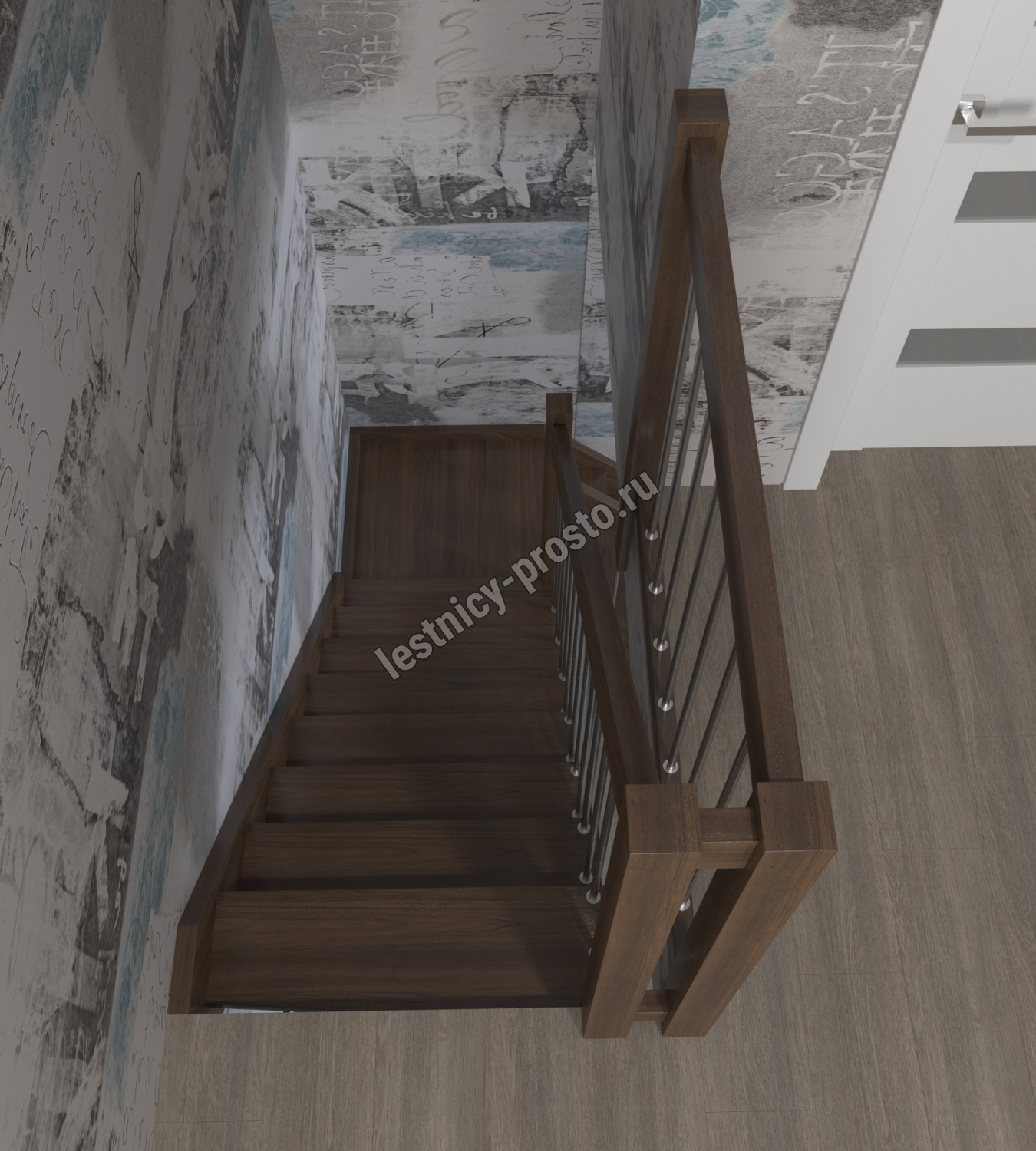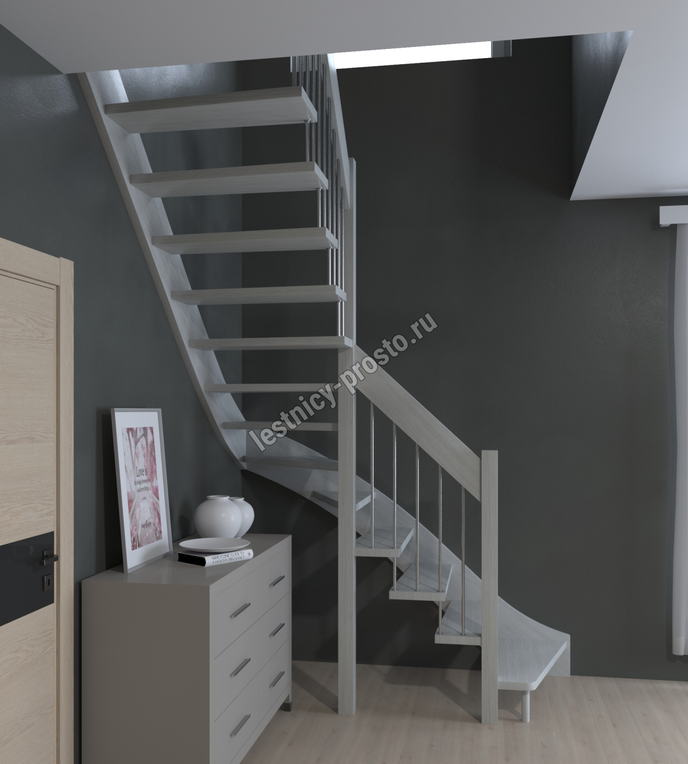 Лестница Prosto Console г-образная забежная дуб, h280 см