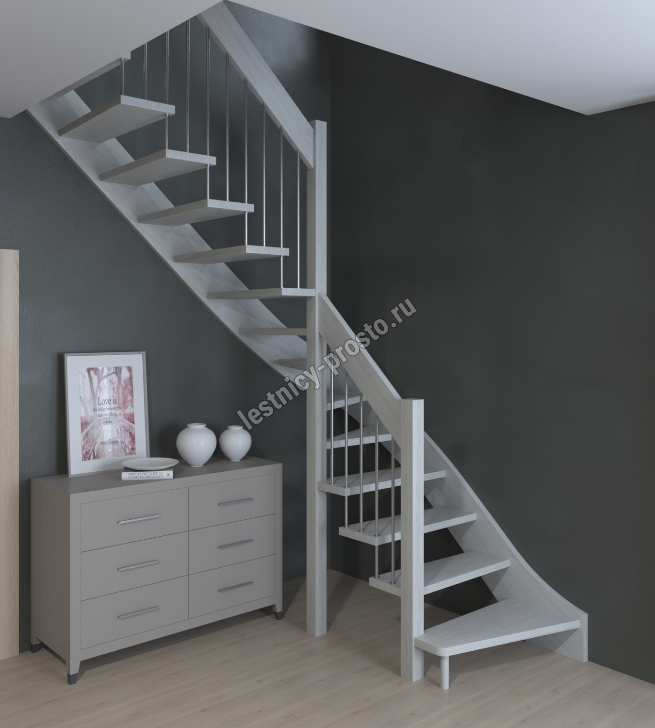 Лестница Prosto Console г-образная забежная ясень, h280 см