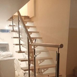 Стеклянная лестница из ясеня LP-2935 с металлическим каркасом