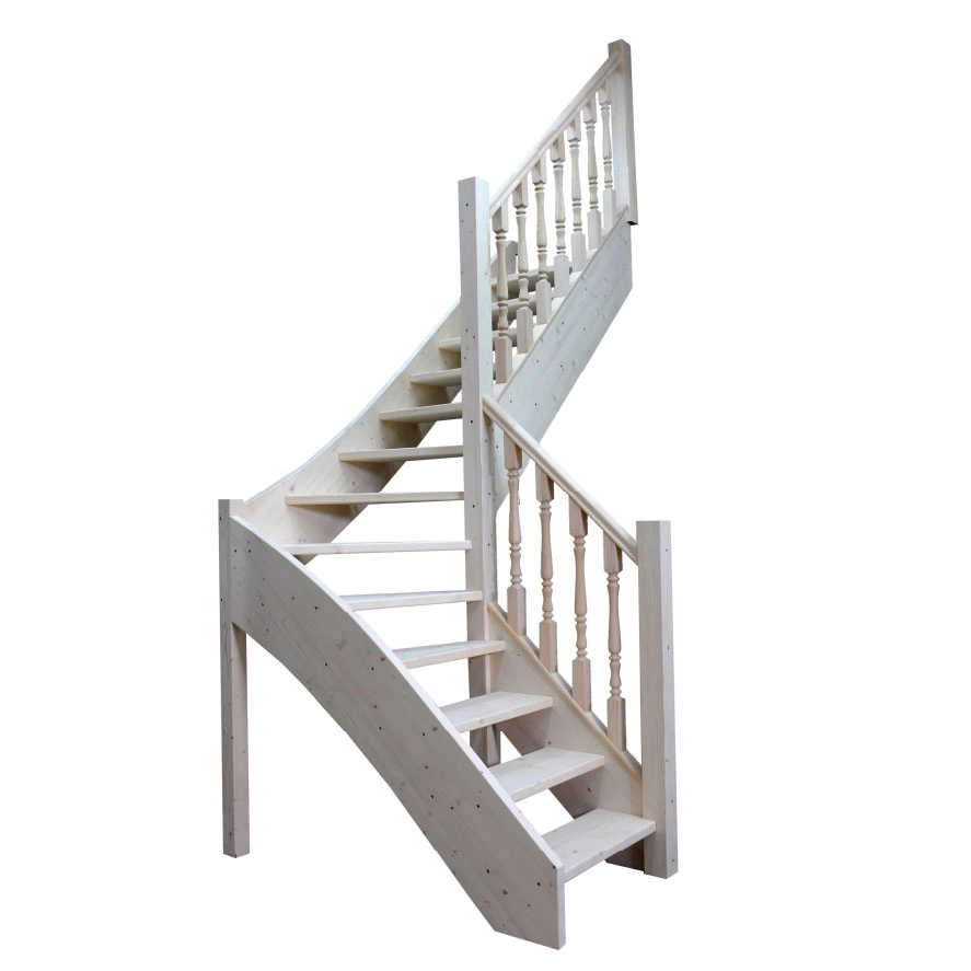 Лестница Универсал изготавливается как с поворотом направо, так и с поворотом налево. Под заказ возможно изготовление лестницы Универсал с высотами этажа: 2300 мм, 2500, мм, 2700 мм, 2900 мм, 3100 мм. В стандартной комплектации лестница поставляется в натуральном цвете, то есть без окрашивания. Первая ступень может быть пригласительной (со скругленными краями или прямой). Базовые ограждения можно заменить на ограждения любого другого вида.