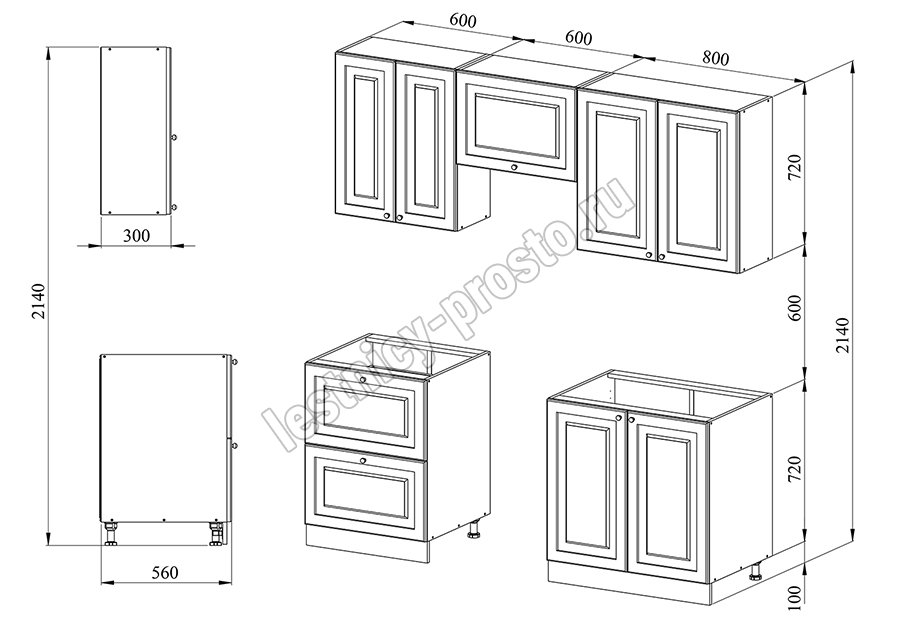 Небольшой кухонный гарнитур из 100% массива сосны шириной всего 2 и высотой 2,14 метра (верхние шкафы 72 см). Один из самых распространенных проектов кухни, который подойдёт для небольшой квартиры, загородного дома, гостиницы или хостела. Цвет на выбор - 27 вариантов (при заказе кухни в нашем интернет магазине просьба указывать название цвета в комментариях).