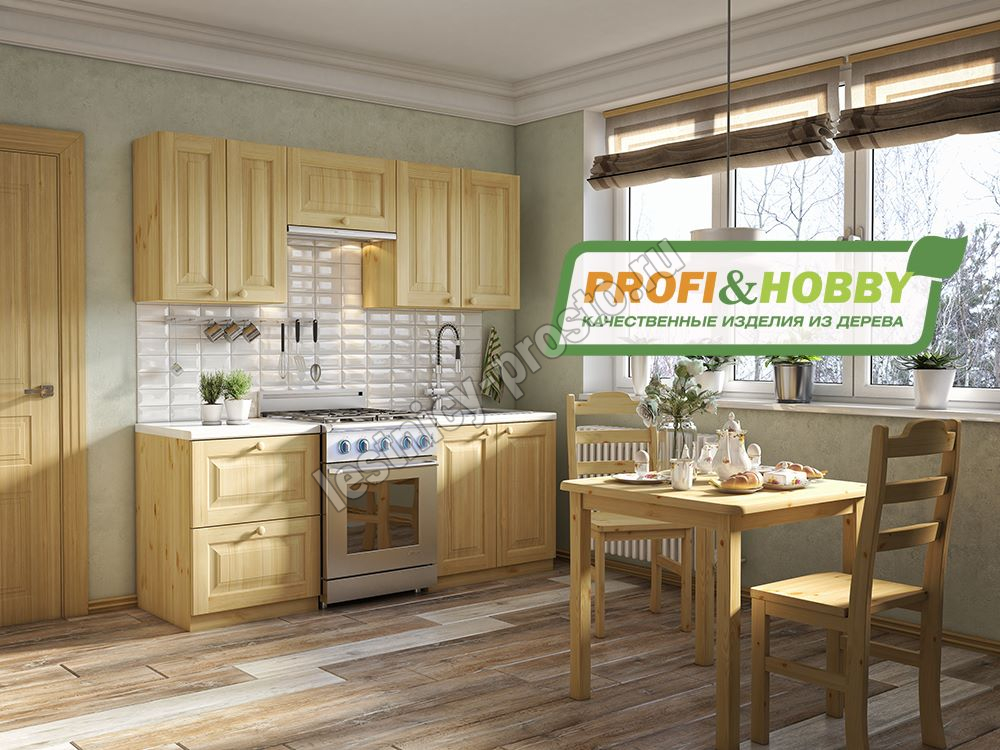 Небольшой кухонный гарнитур из 100% массива сосны шириной всего 2 и высотой 2,32 метра (верхние шкафы 90 см). Один из самых распространенных проектов кухни, который подойдёт для небольшой квартиры, загородного дома, гостиницы или хостела. Цвет на выбор - 27 вариантов (при заказе кухни в нашем интернет магазине просьба указывать название цвета в комментариях).