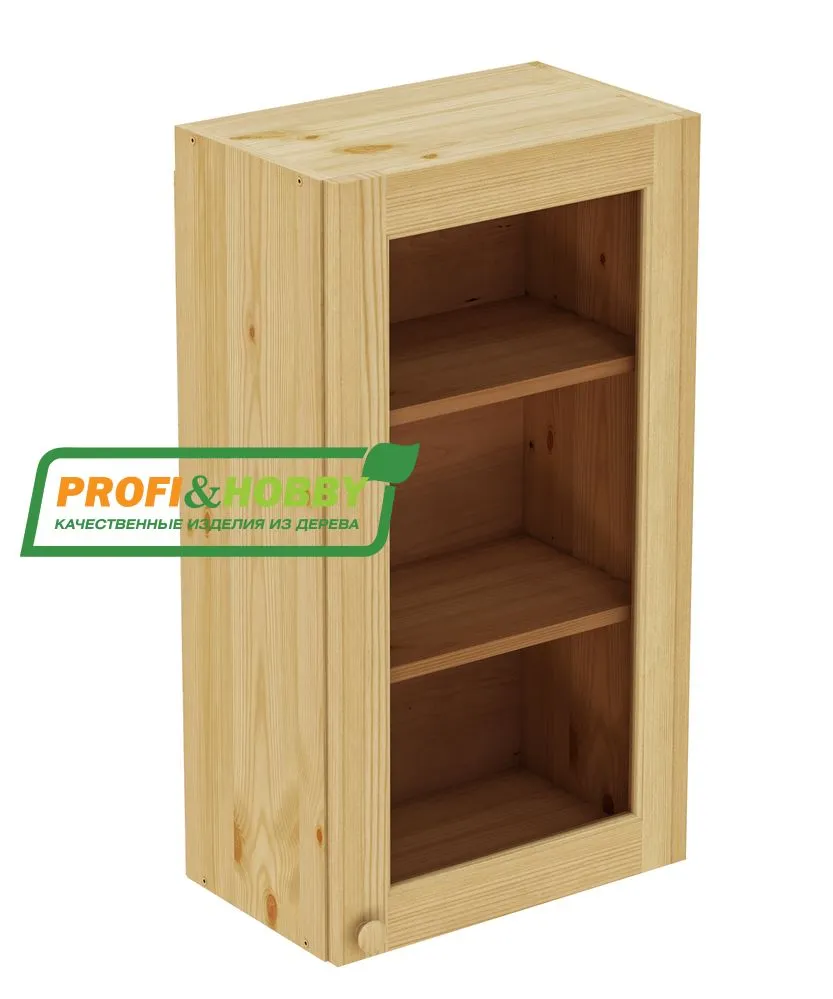 Шкаф навесной изготовлен из 100% массива дерева, без шпона и без МДФ/ДСП.