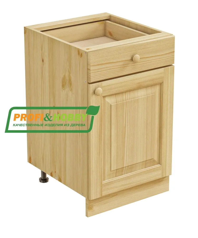 Тумба 1 дверь, 1 ящик 500 х 560 х 720 сосна, бесцветный акриловый лак