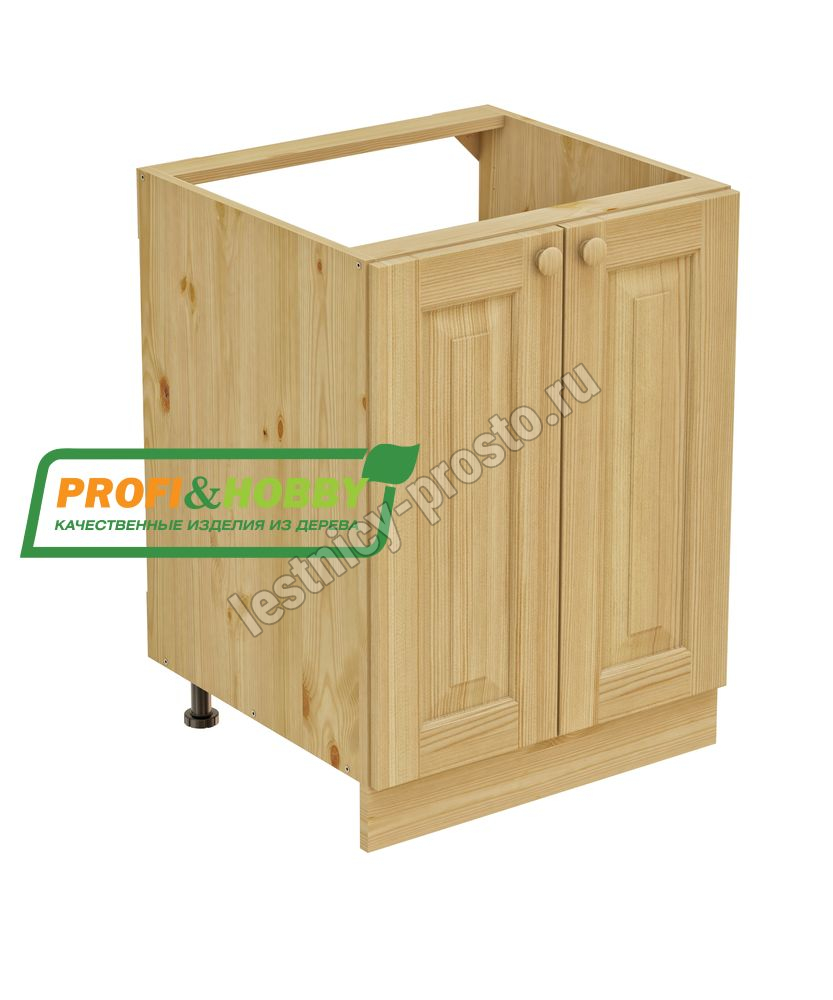 Тумба под мойку изготовлена из 100% массива дерева, без шпона и без МДФ/ДСП.
