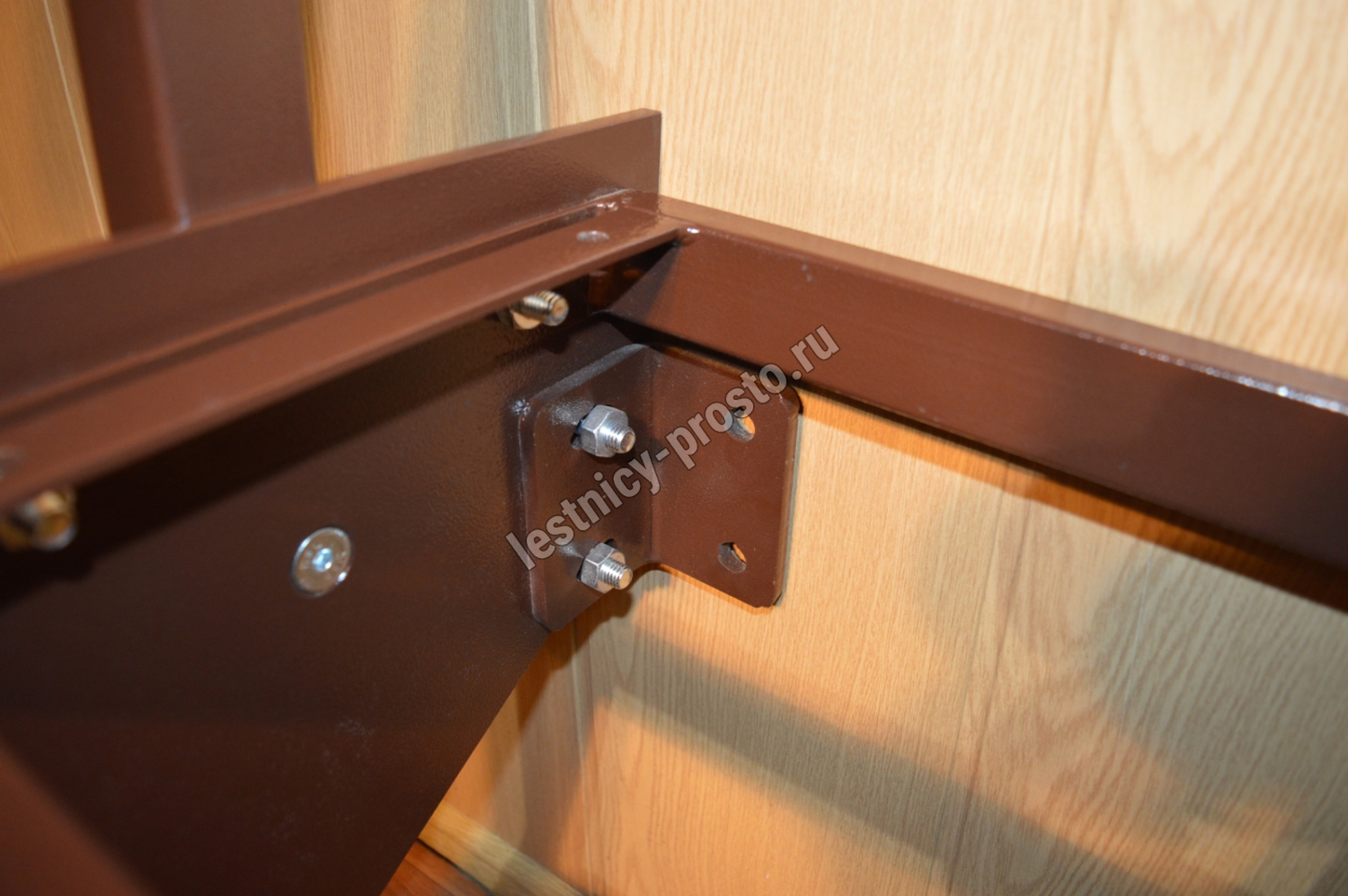 Покрытие порошковое, очень прочное и долговечное. Все детали каркаса крепятся с помощью болтов, благодаря чему Вы можете собрать каркас самостоятельно без применения сварки. В зависимости от ширины лестницы, каркас состоит из двух (ширина до 1 метра) или трех (ширина до 2 метров) опорных балок (тетив).