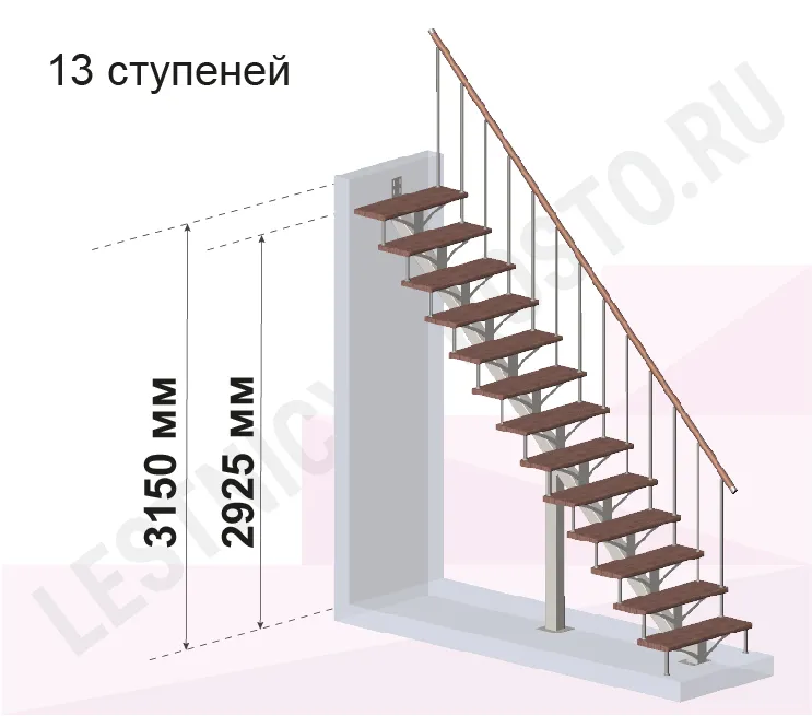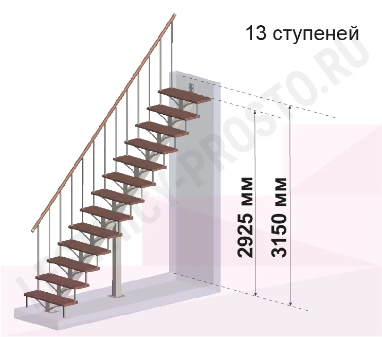 Лестница PROSTO MONO прямая, h315 см, ступени хвоя