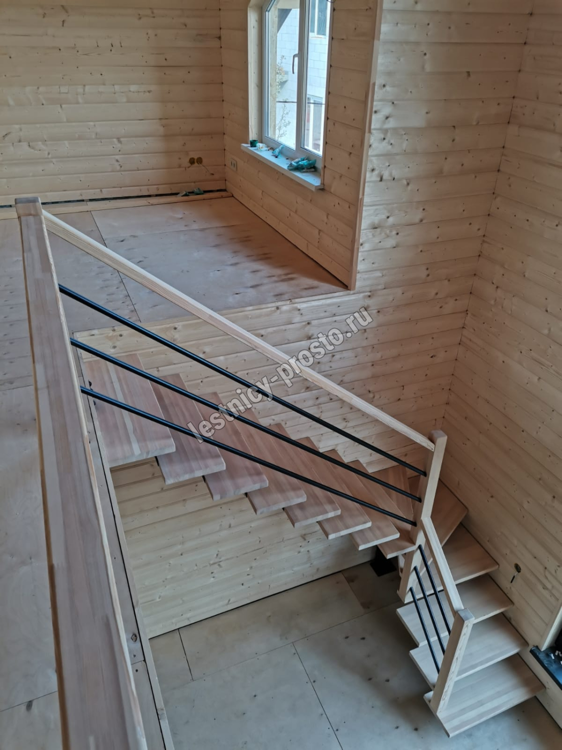 Лестница PROSTO MONO STEP TRINITY г-образная забежная, ступени берёза