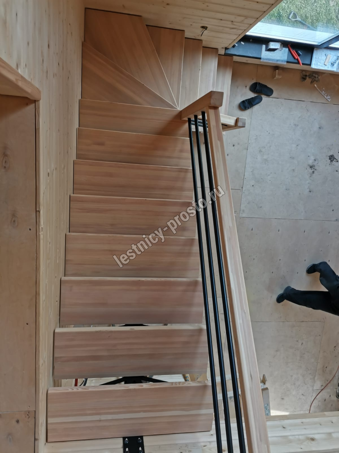 Ступени выполнены из срощенной лиственницы.