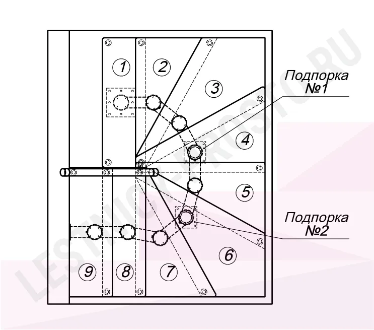 Каркас лестницы представляет собой набор модулей, которые комплектуются уже готовыми к монтажу.