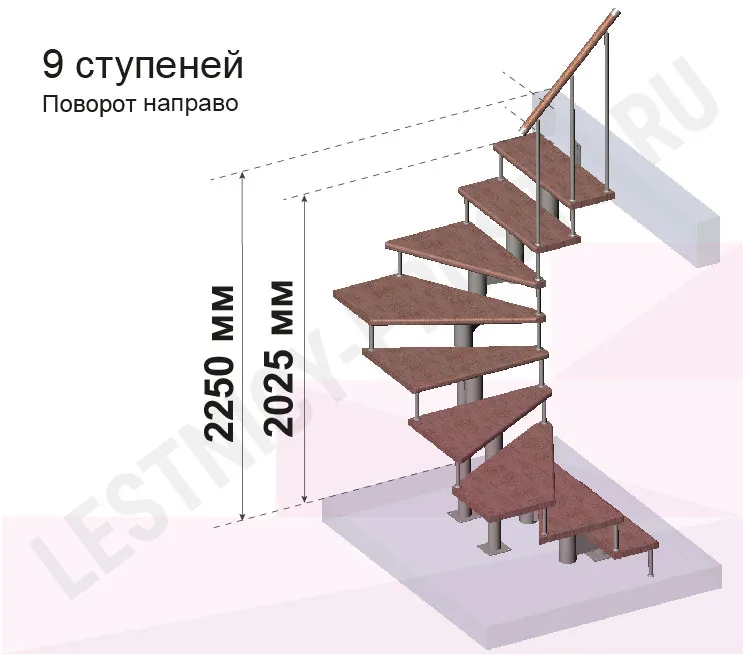 Высота лестницы 2025 - 2250 (9 ступеней) мм