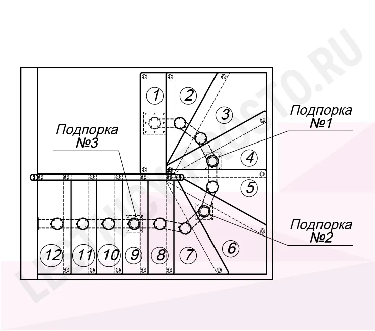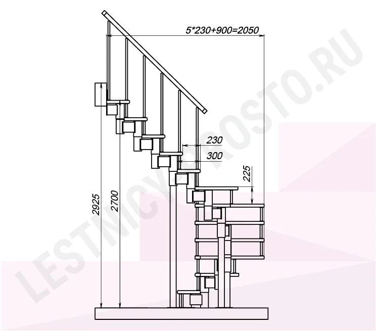 Схема и расчет указаны для шага 225 мм - мы рекомендуем эту высоту шага, как оптимальную для комфортного подъёма и экономии бюджета.