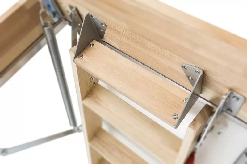 - Возможность устанавливать лестницу как прямую, так и с поворотом внизу или вверху; при этом нужно понимать, что поворот менее удобен, чем прямой участок лестницы.