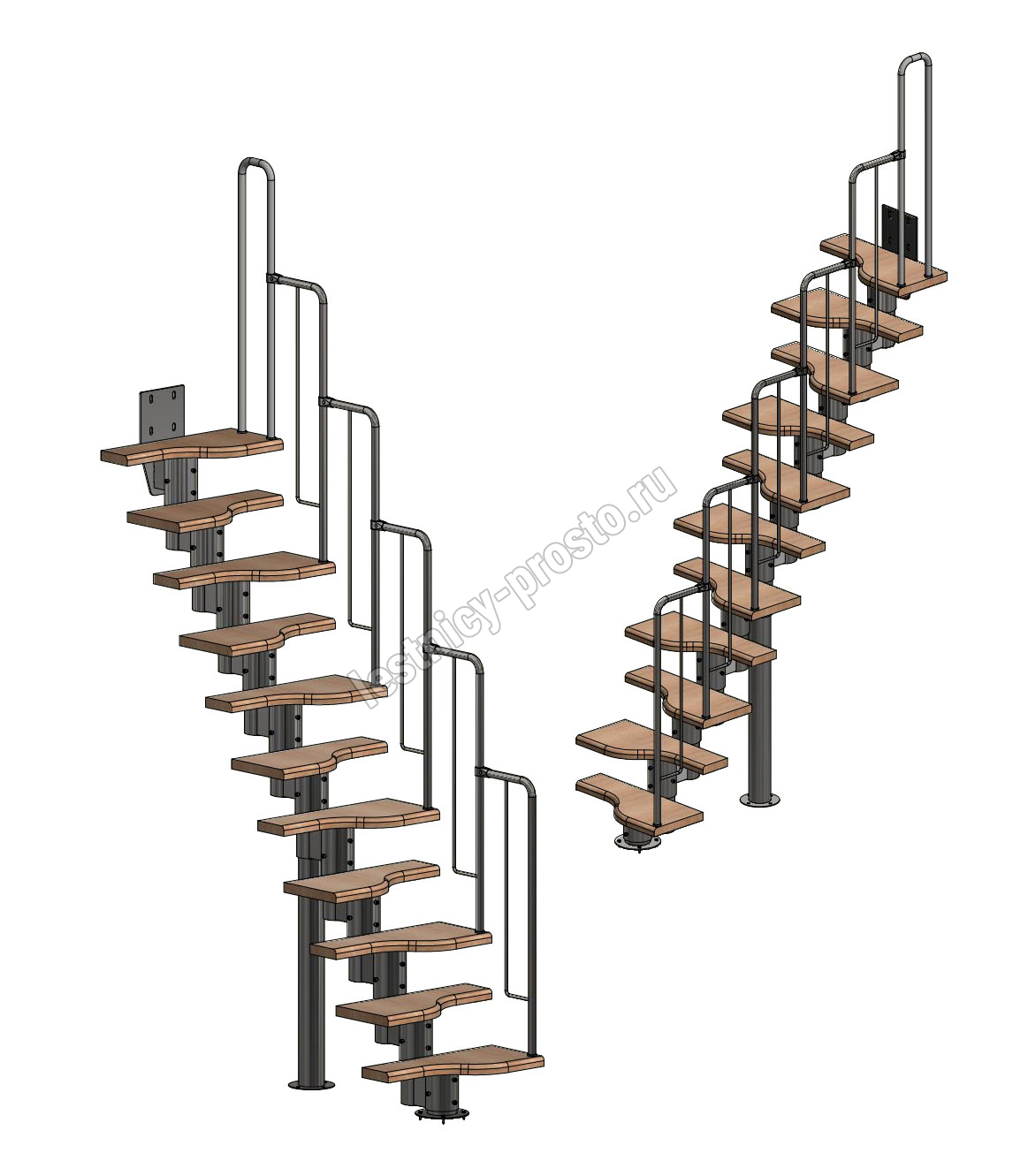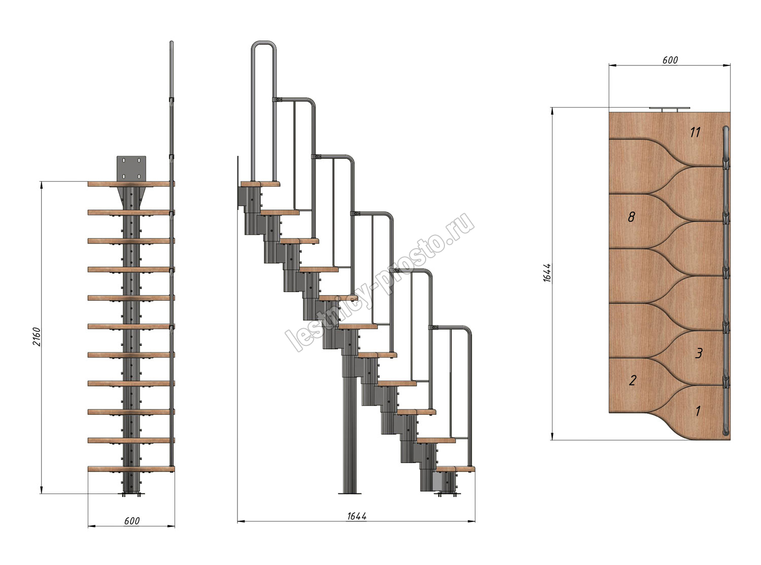 Лестница Prosto Urban Black гусиный шаг 600 мм, h198-288 см (11 ступеней), бук