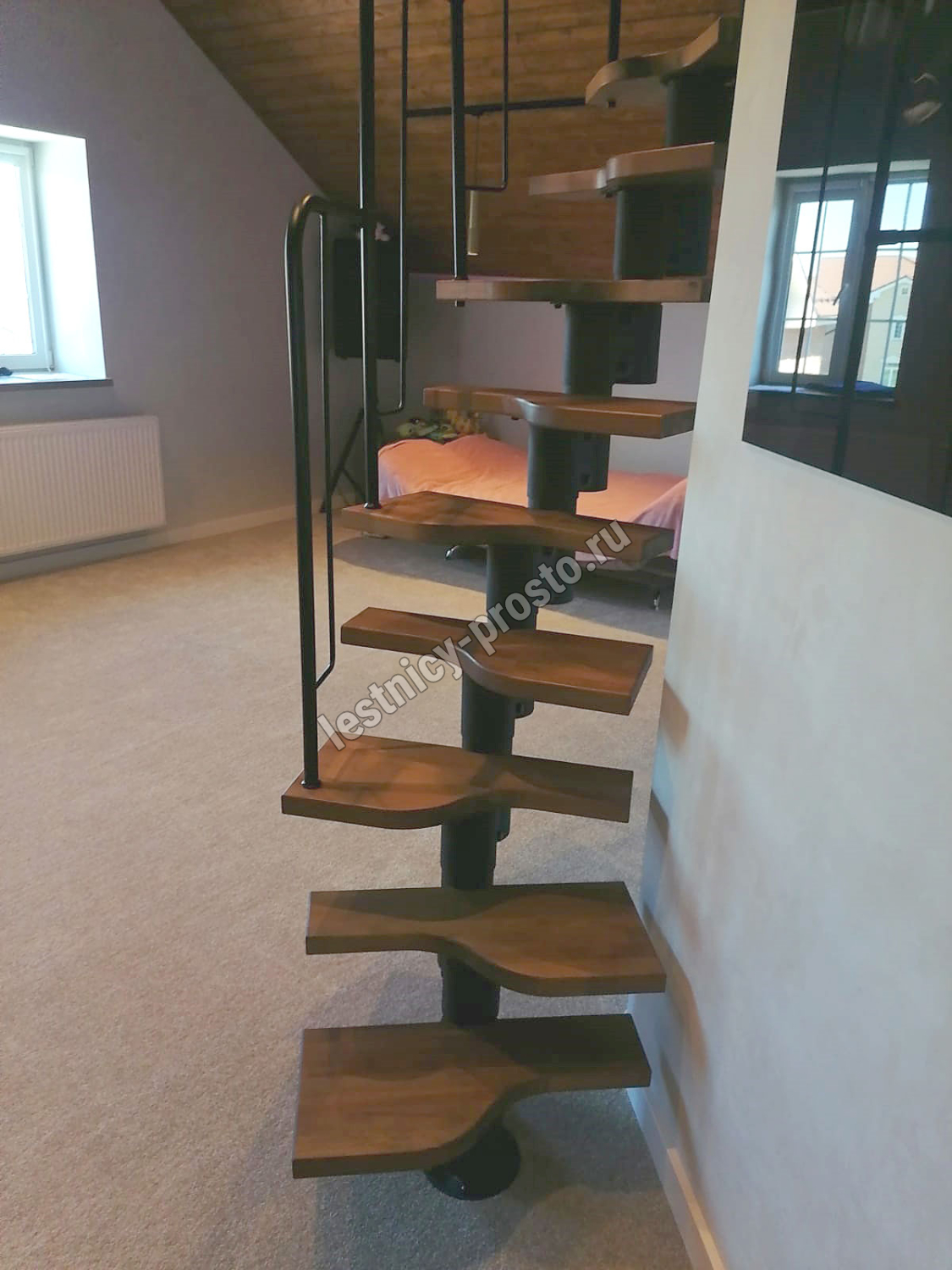 Лестница Prosto Urban Black гусиный шаг 600 мм, h234-336 см (13 ступеней), ясень
