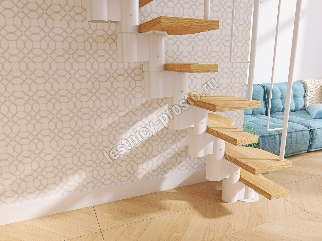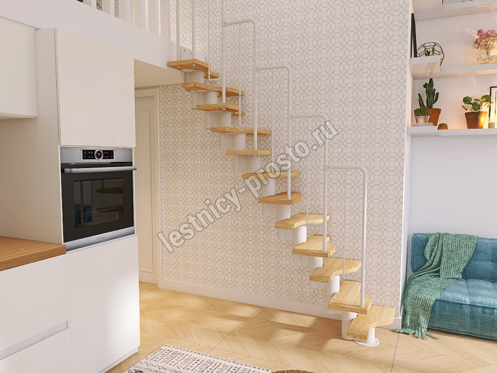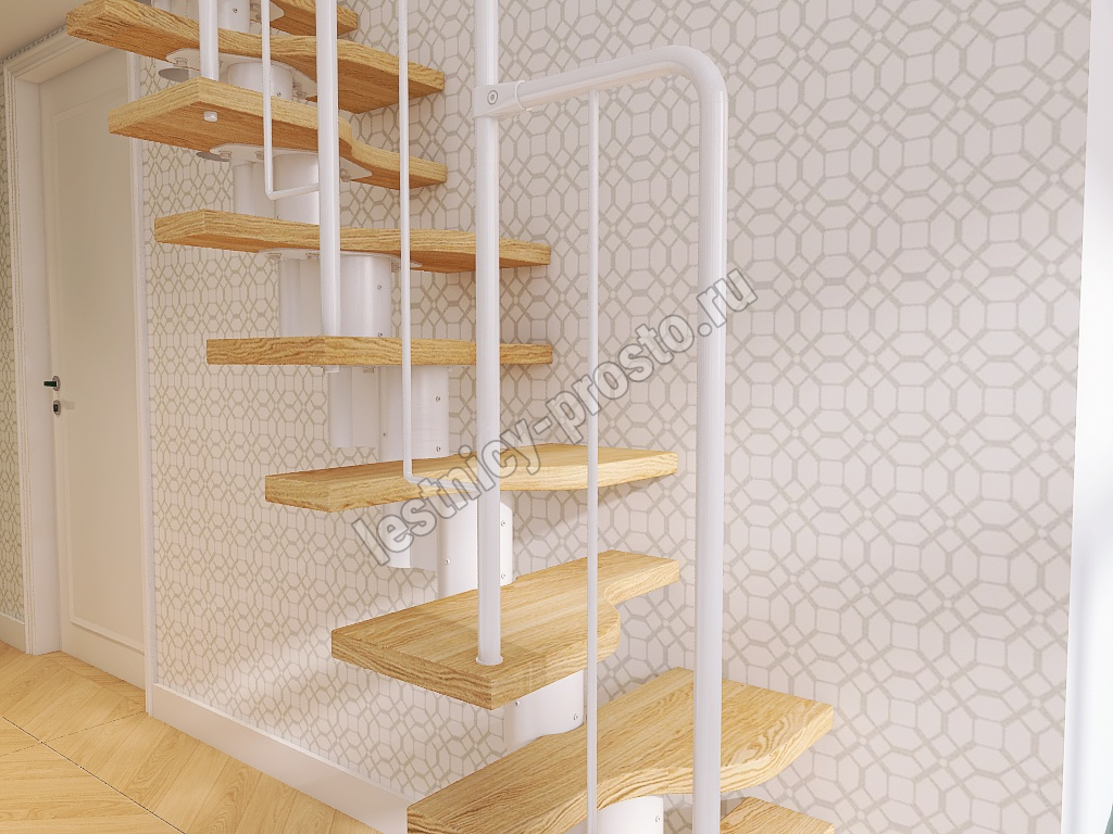 Лестница Prosto Urban White гусиный шаг 700 мм, h198-288 см (11 ступеней), бук