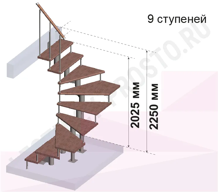 Схема и расчет указаны для шага 225 мм - мы рекомендуем эту высоту шага, как оптимальную для обеспечения комфортного подъёма и экономии бюджета.