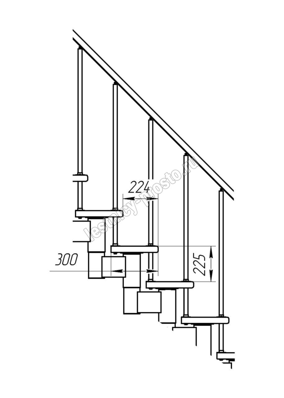 Модульная лестница Фаворит 225 2925-3055, Черный, Бук, Нержавеющая сталь