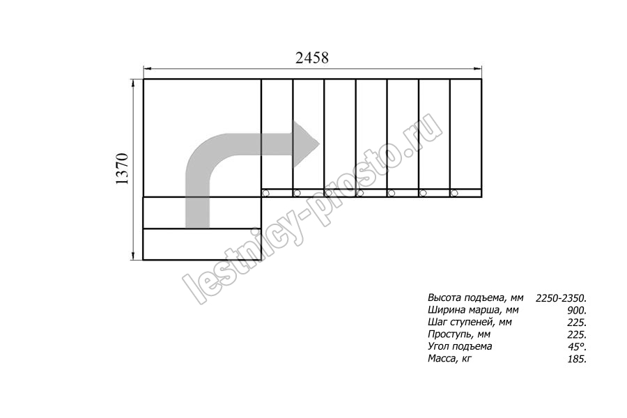 Модульная лестница Статус 225 2250-2350, Белый, Сосна, Нержавеющая сталь