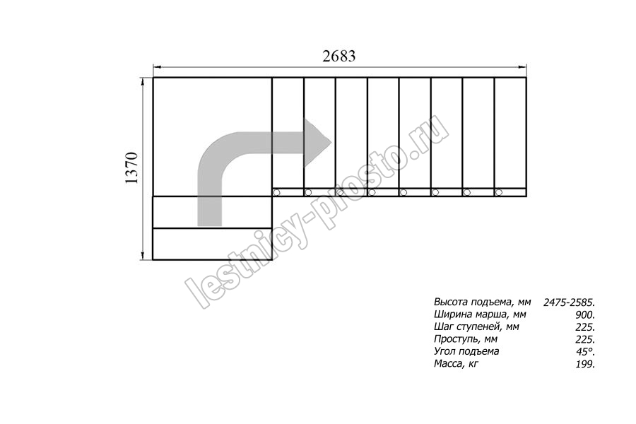 Модульная лестница Статус 225 2475-2585, Белый, Сосна, Крашеная, Без Ступений