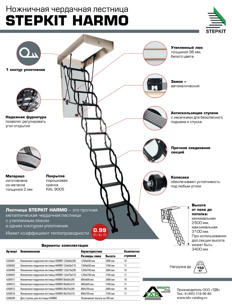 Высота лестницы 3150 - 3290 мм