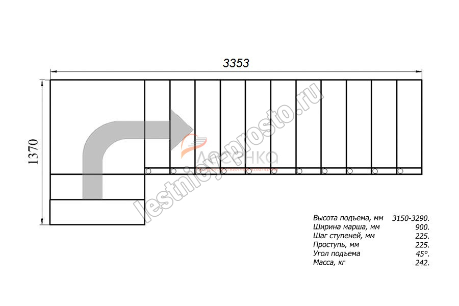 Модульная лестница Статус 225 3150-3290, Черный, Лиственница, Крашеная