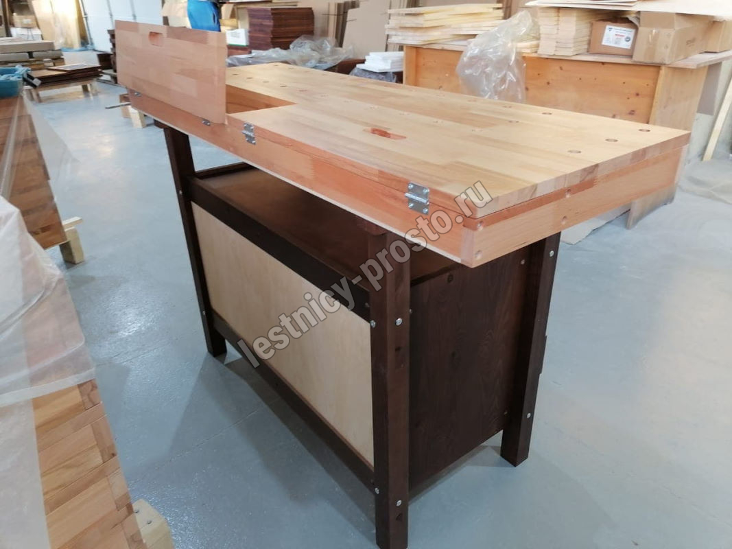 Комплектация: 2 комплекта тисков, 2 пенала в столешнице, 3 ящика, 1 шкафчик, полка.