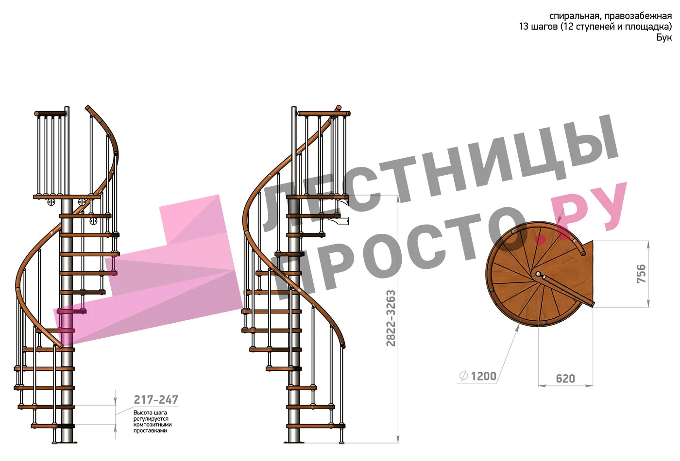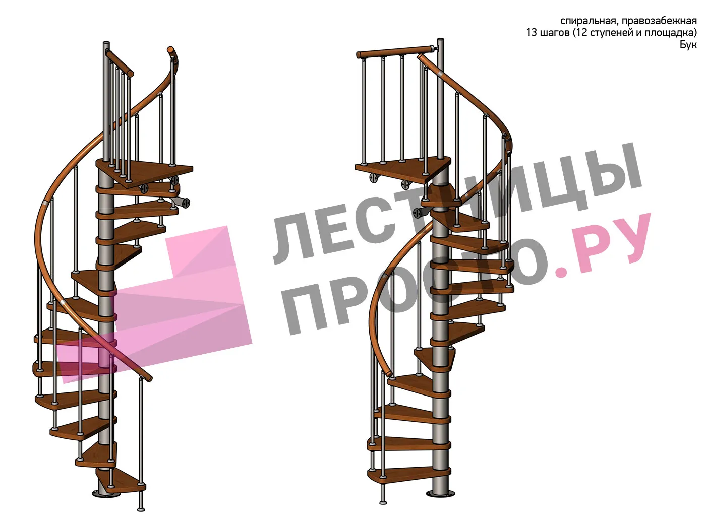 Правая, d=120см, 12 ступеней + площадкам
