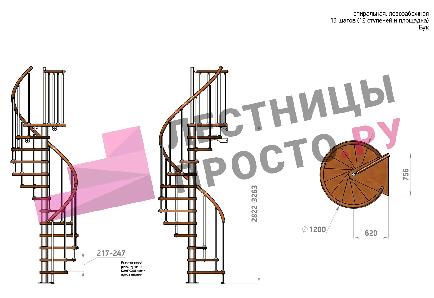 Винтовая лестница Prosto Spiral Black D120см, h282.2-326,3 см, бук