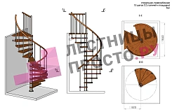 Решение о направлении поворота принимается при сборке лестницы - универсальная конструкция позволяет собрать правозабежную и левозабежную лестницы. Ширина ступени между центральной колонной и поручнем ≈ 680 мм