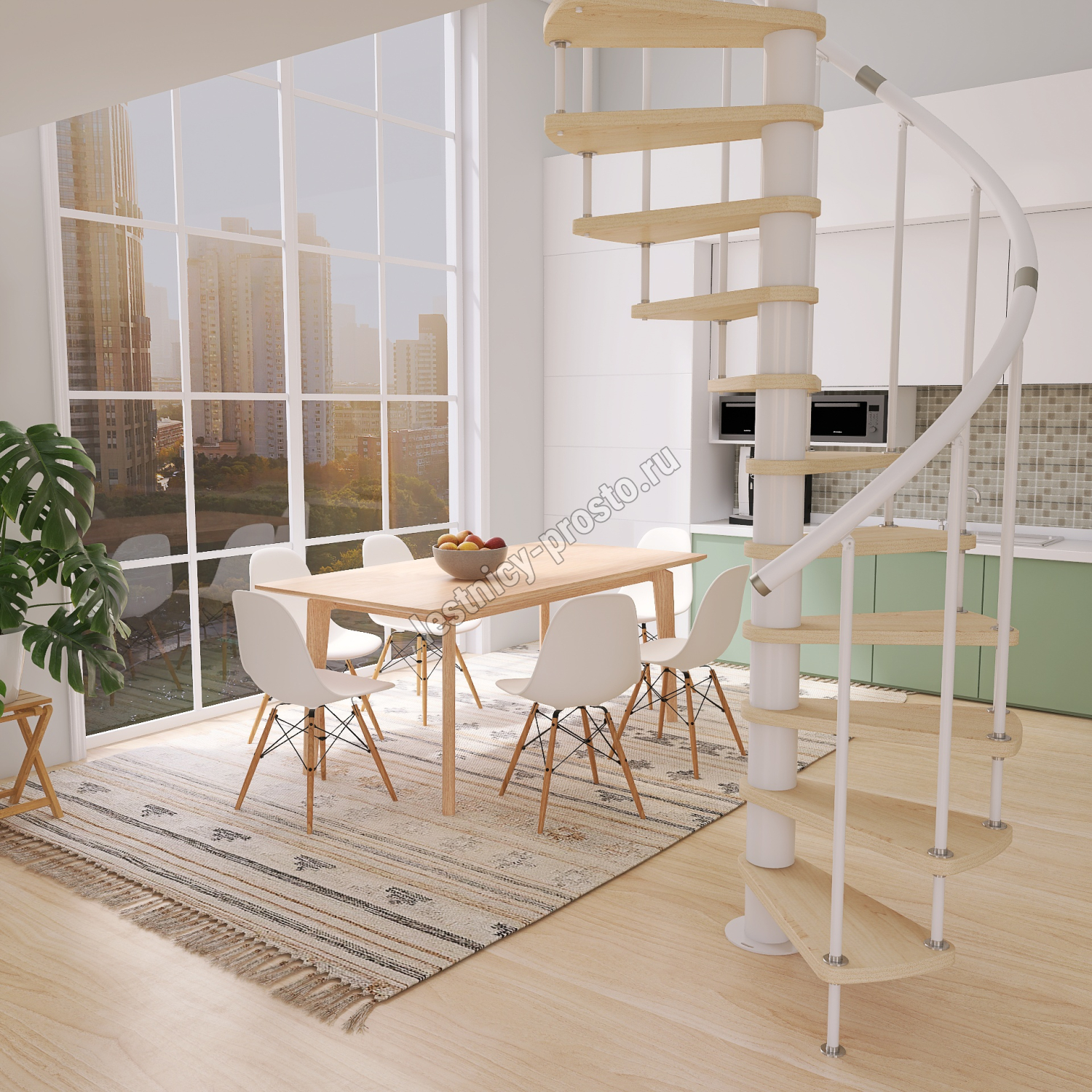 Винтовая лестница Prosto Spiral White D120см, h303.9-348,1 см, бук