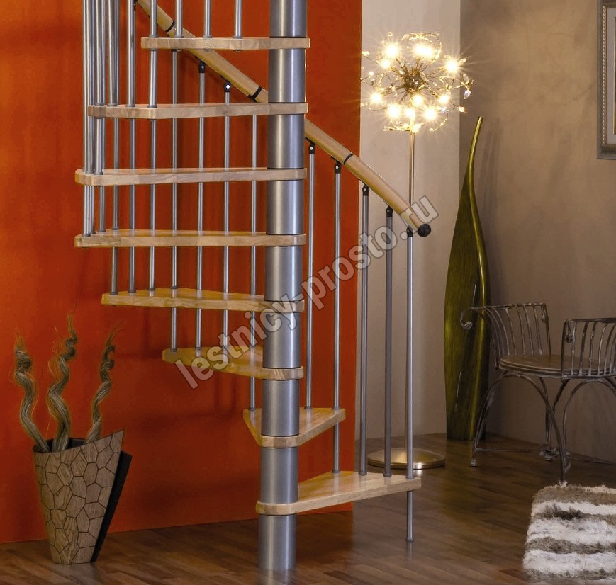 | Винтовая лестница SPIRAL DECOR d140 см, серебро, бук лакированный |