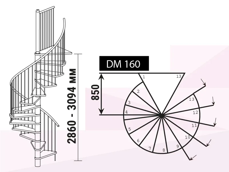 | Винтовая лестница SPIRAL DECOR d160 см, черная, бук лакированный |