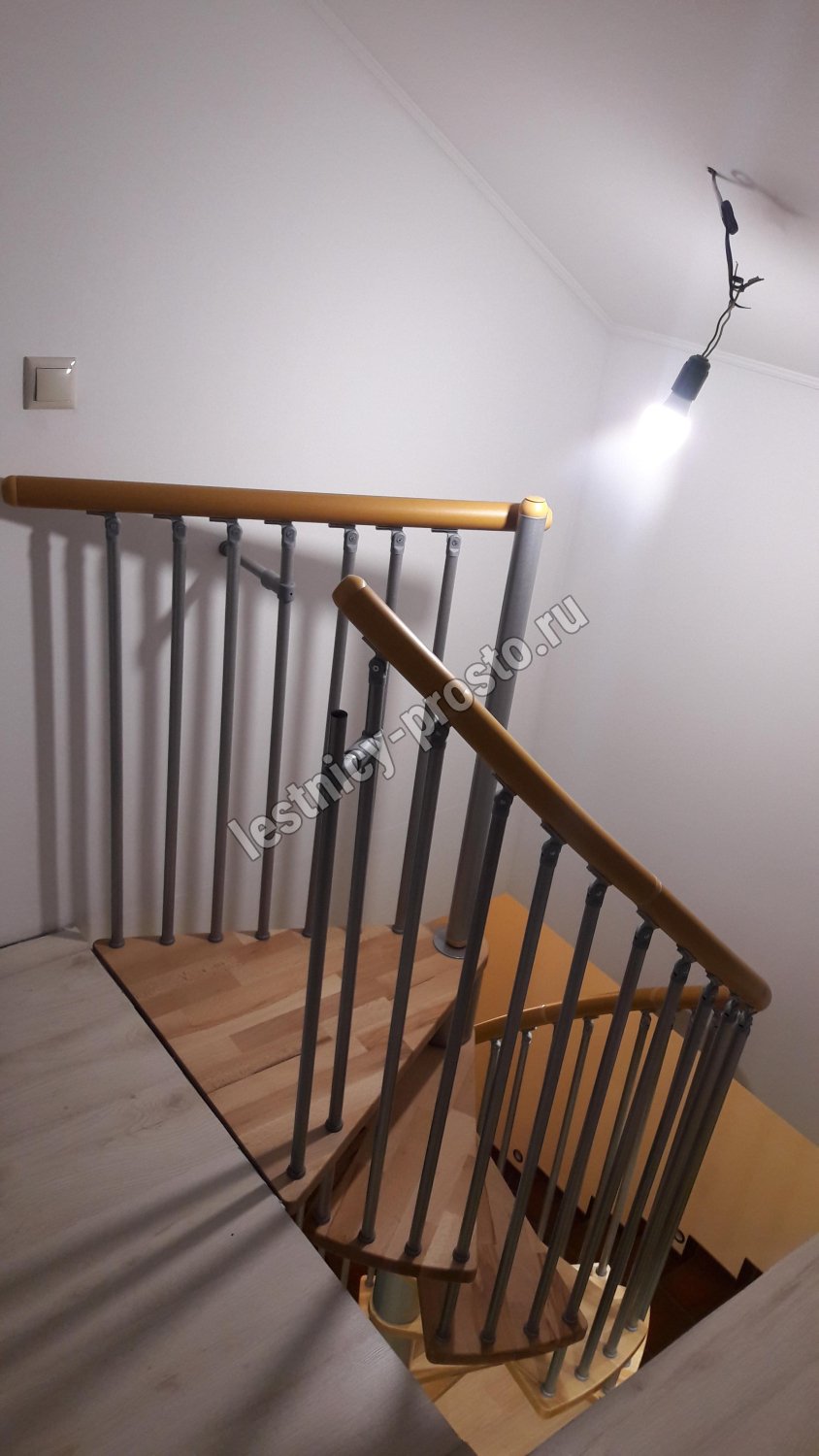Винтовая лестница SPIRAL WOOD d120 см. серебро, лакированный дуб